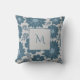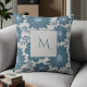 Coussin florale couleur argent bleu avec d'élégants accents de script avec de belles fleurs branchées et un style vintage, parfait pour les vacances, printemps, automne, automne, ou décor maison d'hiver.