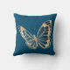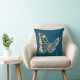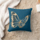 Papillon surligné d'or et d'aquarelle bleue sur un oreiller à lancer. La couleur Arrière - plan peut être modifiée.