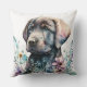 Coussin Aquarelle Brown Labrador Retriever et Fleurs