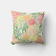Coussin Aquarelle d'été Pêche botanique Corail Jaune
