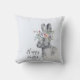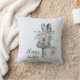 Pretty Spring thème de lancer oreiller a gray aquarelle lapin avec illustration de couronne florale et personnalisable Happy texte de Pâques sur pastel bleu arrière - plan