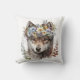 Un joli décor d'aquarelle avec un loup entouré de fleurs colorées.
