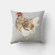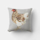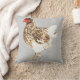 Charming ferme jeter l'oreiller avec une aquarelle illustration de poule mouchetée Brown et blanche sur arrière - plan faux gris