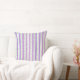 Coussin décorée de rayures d'aquarelle lavande accentuée de points d'aquarelle vert citron sur un arrière - plan blanc. Joli décor maison ou patio !