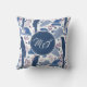 Ara Parrot Bleu Motif Tropical Monogramme Jeter Oreiller. Ara motif avec des feuilles tropicaux dans les tons bleu et rose. Ajoutez vos initiales.