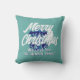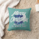 Arbre de Noël Jeu Artistique Bleu Jeu Script Jeter Oreiller. Design de vacances avec un arbre de Noël artistique décoré et un script blanc tendance.