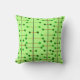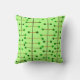 Cet oreiller de lancer a un design moderne du milieu du siècle de lignes verticales noires avec des lignes verticales brunes et des cercles verts.