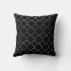 Motif marocain chic, noir et de faux d'aluminium argenté de quatrefoil de motif d'oreiller de Faux d'aluminium argenté de sembler de treillis de quatrefoil sur l'arrière - plan noir. Dessus dos identique. Note : Toutes les images sont imprimées. Aluminium non réel. Le coussin sophistiqué est assorti à pratiquement n'importe quel décor de noir et d'argent, à thème marocain, à décor moderne, à chambres à coucher fascinantes, ou à styles traditionnels. Des conceptions plus élégantes de coussin sont dans notre magasin de Zazzle.com/angela65. Ajoutez n'importe quel texte fait sur commande que vous souhaitez. Décor à la maison chic.