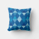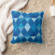 Motif moderne du milieu du siècle Arlequin en triangles empilés formant des formes diamant - nuances de chambrey pâle à bleu denim clair sur un denim moyen bleu arrière - plan jeter l'oreiller
