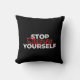 Arrêtez de vous arrêter Typographie Jetez un oreiller Ce projecteur présente un mélange sophistiqué d'esthétique moderne et d'élégance intemporelle. Le tissu de base est un bleu marine profond luxueux, offrant un cadre riche et apaisant. De l'autre côté du coussin, des motifs géométriques complexes et d'un blanc immaculé créent un contraste saisissant, avec des formes diamant imbriquées et des lignes angulaires subtiles qui ajoutent profondeur et intérêt visuel.