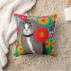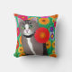 Coussin Art folklorique Style Whimsical Kitty Chat et Fleu
