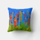 Coussin avec des couleurs éclatées : design abstrait (turquoise, verte et touches de rouge)