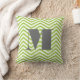 Avocado Green Ivory et gris moderne Monogramme Zig Zag Motif Jeu d'oreiller