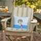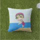 Ce coussin décoratif en tissu extérieur a une mignonne petite nageuse dans un maillot de bain à pois rose et de grands yeux de googly sur le point de plonger dans un lac bleu sur le devant et le dos.