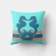 Coussin lumineux et joli, sur lequel une paire d'hippocampes partage un moment, et faire tellement juste au-dessus de votre initiale, qui est encerclée par une corde nautique. Accent doux pour une maison côtière ou pour augmenter un thème nautique.
