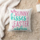 Une mignonne citation de la typographie rose et verte pour Pâques, qui dit : "Baisers de lapin et souhaits de Pâques".