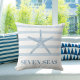 Coussin Bande d'étoiles de mer bleu clair texte côtier