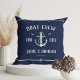 Bateau pour la vie ! Ancrage moderne lancer l'oreiller en bleu marine classique et blanc présentant vos noms et date entourés de détails de corde. Grand cadeau pour les amateurs de bateaux pour la Saint Valentin, les jeunes mariés, les mariages, les renouvellements de voeux, ou les anniversaires.