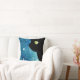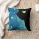 Coussin Beau chat noir dans le carreau bleu d'aquarelle