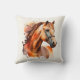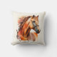Un coussin avec une belle illustration. Tête de cheval couleur châtaignier et haut du corps. Avec des patchs d'aquarelle derrière.