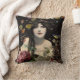 Un coussin d'accent carré d'inspiration vintage très spécial avec un beau portrait d'une femme entourée de fleurs, d'oiseaux, d'abeilles, de baies et de feuilles balayés par le vent sur un arrière - plan noir élégant. Cet accent coussin unique est aussi dynamique et durable qu'il est romantique et adorable. Disponible dans votre choix de taille et d'options de tissu. Le complément parfait à votre salon ou à votre élégant patio. Fait un cadeau réfléchi.