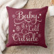 La conception saisonnière des coussins comprend des scripts "Baby it's Cold Outside", qui écrivent du texte avec des accents d'étoile et de flocon de neige des deux côtés. Merlot / vin rouge arrière - plan couleur peut être customisé pour coordonner avec votre décor de vacances.
