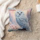 Coussin Belle Chouette des neiges, fleurs roses. Nom modif