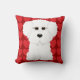 Carreau adorable de Bichon Frise. avec le coussin personnalisable d'arrière - plan rouge de coeurs ! Changez la couleur d'arrière - plan pour assortir votre décor. Personnalisez avec un nom ou un message !
