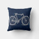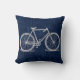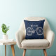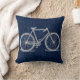 Un oreiller à thème classique à vélo avec un vélo illustré en noir et blanc style journal avec un arrière - plan bleu profond.