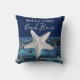 L'oreiller rustique Nautical Nautical Navy Blue Throw est conçu de chaque côté avec un demi-bleu foncé et l'autre moitié est un faux bois de grange bleu. "Welcome to Our Beach House" est en lettres blanches et maigres, mêlées à des lettres manuscrites branchées sur le centre de devant. Vous pouvez customiser le texte si vous le souhaitez en cliquant sur l'option Personnaliser le modèle.