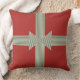 A bold geometrical striped large bow in festive colors, running across the pillow as if gift wrapping it, with customizable text forms a perfect holiday gift or decor for the season.
