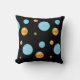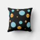 Beau oreiller à lancer avec grand or et pois turquoise sur arrière - plan noir.