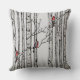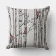 Coussin Birches rouges et gris et oiseaux cardinaux rouges