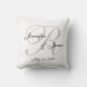 Le gris personnalisé, le coussin décoré d'un monogramme noir et blanc avec des noms de jeunes mariés et la date de mariage dans un recouvrement de police de manuscrit conçoivent sur un arrière - plan blanc. Elke Clarke© pour MonogramGallery chez Zazzle. Fait un grand cadeau pour nouvellement l'épouse. Grand accessoire à la mode et élégant pour votre chambre à coucher, chaise préférée, en tant que le décor de maison d'amusement dans votre chambre familiale ou addition décorative formelle à votre salon. Customisez avec vos noms, initiale de monogramme et date de mariage.