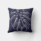 Coussin Blanc Tropical Leaf Motif Sur Dark Navy Blue