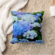 Fleurs Hydrangée Bleues et Blances - Une belle tache de fleurs d'hydrangée en pleine floraison recouvre le coussin d'un bout à l'autre. La plupart des fleurs sont bleues et blanches mais on aperçoit le violet autour des bords. Les fleurs sont de part et d'autre du coussin.