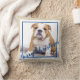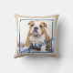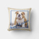 Anglais Bulldog Blue Christmas Photo Throw Pillow. Coussin de Noël de bulldog anglais avec une photo personnalisable d'un chiot britannique bulldog dans un cadre bleu et un joyeux texte de Noël. Vous pouvez modifier le texte ou simplement l'effacer. Insérez votre photo préférée dans le modèle. Coussin amusant et festif pour un chien ou tout autre animal de compagnie. Un grand coussin comme cadeau de Noël pour vos amis et votre famille.