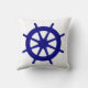 Décor côtier sur le thème marin de la marine bleue Nautical Ship Helm ou Wheel sur un arrière - plan blanc, conceptions nautiques pour la vie côtière ou la décoration de plage. Idéal pour un chalet balnéaire ou une maison de plage.