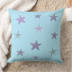 Blue sea stars sur Throw Pillow turquoise. Des étoiles bleues avec des teintes violettes.