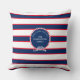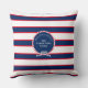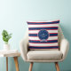 Bleu Marine Blanc Monogramme nautique Coussin de bandes modernes