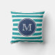 Bleu Nautique Turquoise Bande Monogramme Jeu d'oreiller