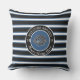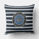 Nom du bateau nautique à rayures noires, bleues et blanches moderne Lighthouse Bienvenue à bord Jeu Pillow Marine Bleu