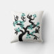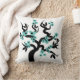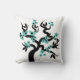 Cerisier turquoise bleu et noir inséparables sakura avec fleurs jettent l'oreiller. Il est doté d'un sakura à fleurs bleu turquoise clair avec un coeur noir au centre et une paire d'inséparables.