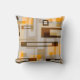 Cet oreiller moderne du milieu du siècle dispose de blocs rectangulaires en marron, tan, orange abricot sur un arrière - plan grège.