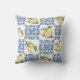 Elegant watercolor french country blue tile and lemon pattern throw pillow to decorate your home with grace.