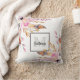 Coussin Boho flores plumes blanc rose girly monogrammé