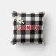 Coussin Bouquet Daisy et nom sur Buffalo Plaid