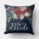 Coussin Bouquet de fleurs bordeaux et bleues, typographie