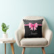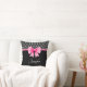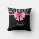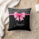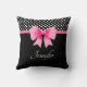 Un nom personnalisé lance un oreiller avec un ruban rose sur un motif pois noir et blanc. Pour personnaliser, tapez votre nom dans le champ modèle. Décor maison correspondant disponible au magasin Motif Dots & Stripes.