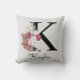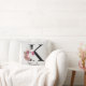 Oreiller décoratif brodé floral rose bohème avec monogramme, cadeau idéal pour Noël ou anniversaire pour une fille, maman, tante ou sœur. Personnalisé avec le monogramme de la lettre K et un nom. Autres lettres disponibles dans ma boutique.